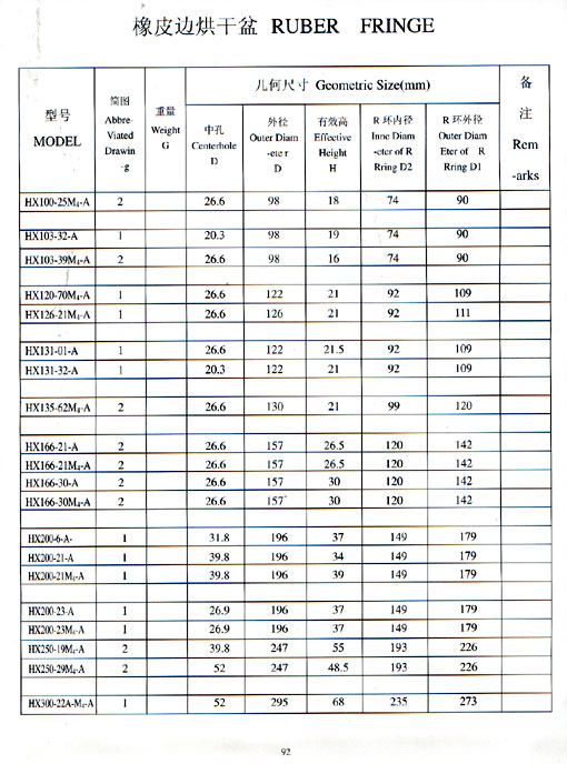 橡皮边烘干盆参数 Ruber fringe